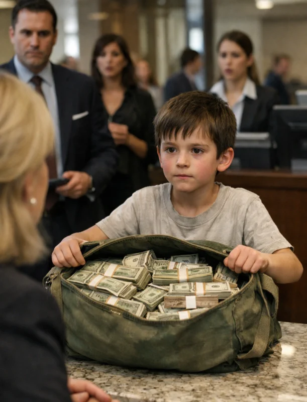 Dečak od osam godina ušao je sam u banku — a ono što je izvukao iz stare torbe ostavilo je sve bez reči