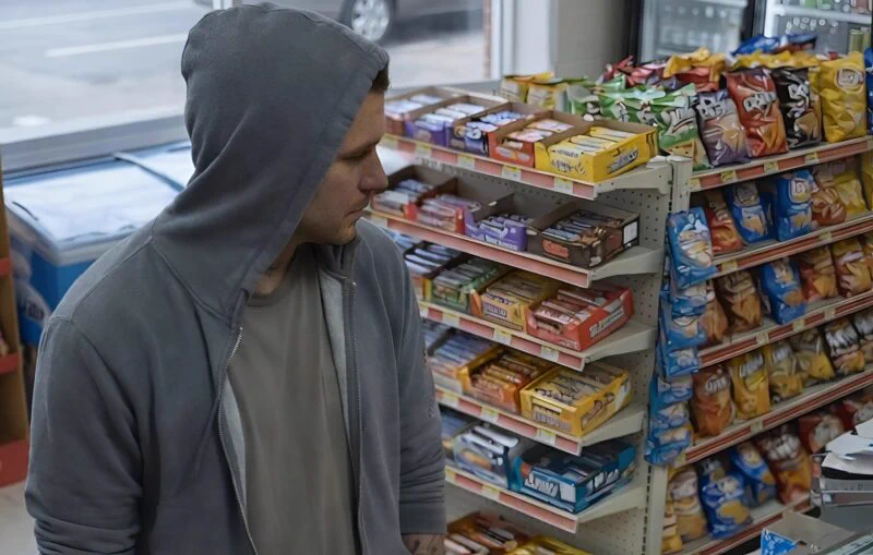 Na vrata je ušao muškarac koji je, priznajmo, na prvi pogled delovao kao nevolja. 🧥 Kapuljača preko glave, siva i duboka, gotovo da skriva lice. Teturave senke preko očiju, pogled težak i izoštren, ruke išarane tatuažama koje privlače neželjenu pažnju. Onaj tip koji te natera da stegneš torbu i ubrzaš korak. Onaj tip koga ne pozdravljaš prvi.