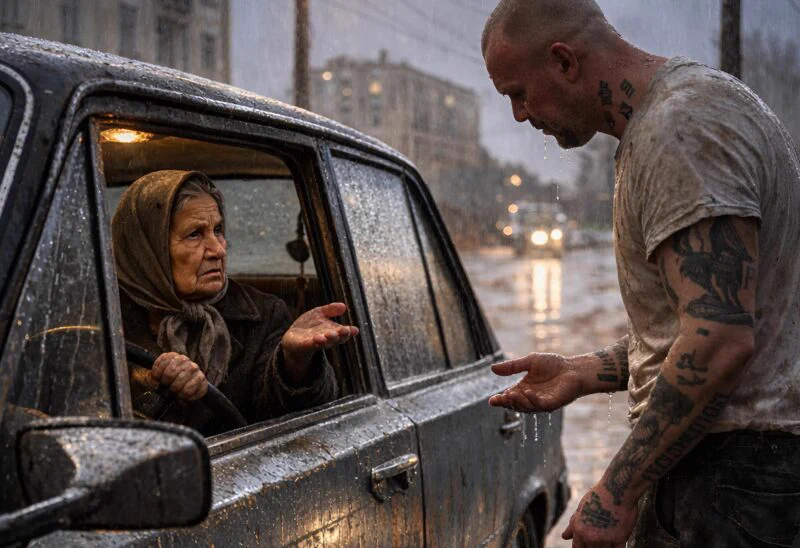 Pljusak je te večeri bio nemilosrdan, kao da je nebo rešilo da spere sav umor sa asfalta. Brisači su grebli staklo, farovi se mutili u vodenim zavjesama, a ulične lokve pretvarale su se u ogledala. U tom sivom, mokrom oknu sveta, za volanom starog sedana sa izlizanim volanom i škripavim vratima, sedela je žena od sedamdeset godina. Svakog dana stajala je za tezgom na pijaci — prodavala povrće, smeškala se mušterijama, cenkala se strpljivo, jer drugih bližnjih više nije imala i raditi je morala. 🚗🥕
