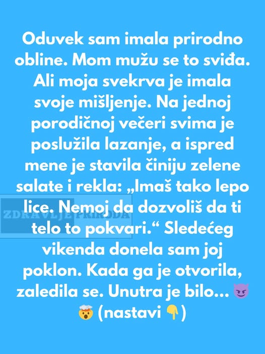 Priča počinje na jednoj porodičnoj večeri, gde je žena doživela duboko povredljiv komentar od svoje svekrve. Iako je bila zadovoljna svojim prirodnim oblinama, njenoj svekrvi to nije bilo dovoljno. „Tvoje lice je lepo, ali bi trebalo da obratiš pažnju na ostatak tela,“ izjavila je svekrva. Ovaj komentar, iako nenamerno izgovoren, duboko je pogodio ženu.