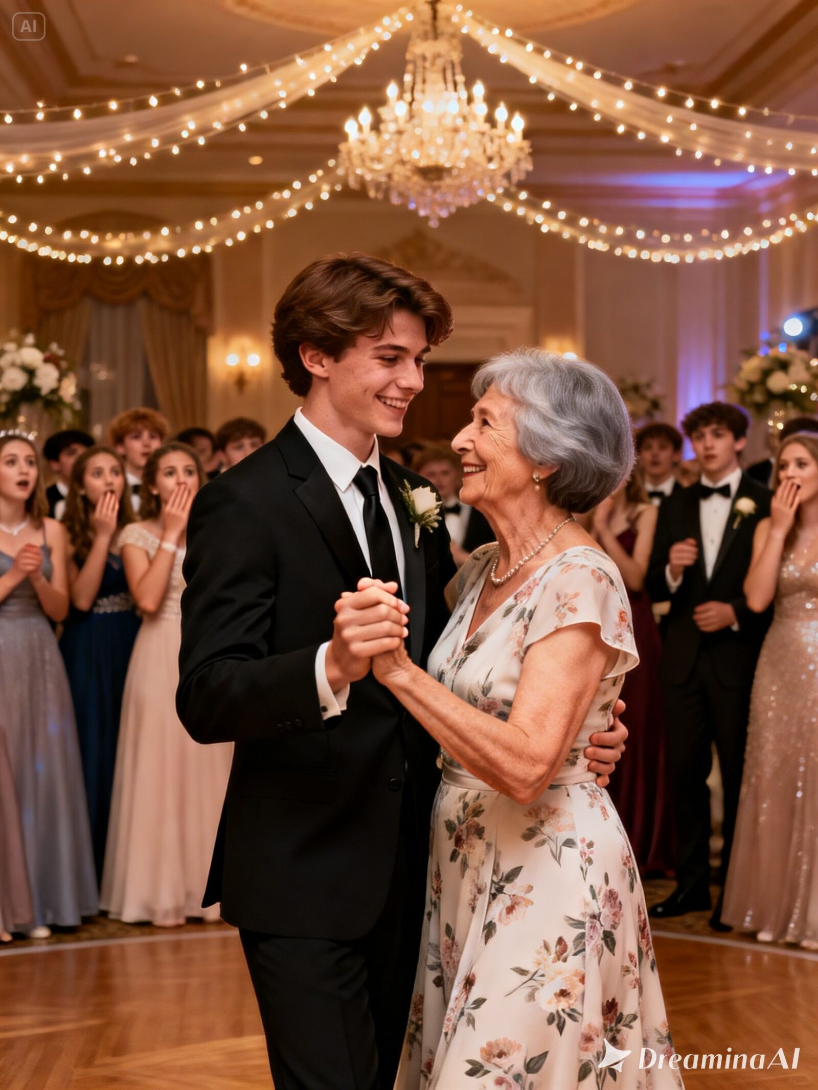 Kada je muzika počela, parovi su se polako slivali na plesni podijum. Ja sam sačekao trenutak. Zatim sam prišao baki i pružio joj ruku.